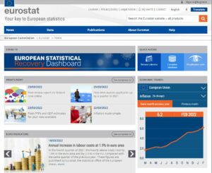 El lloc web d’Eurostat ofereix accés a totes les bases de dades, eines, productes i serveis estadístics de l’oficina d’estadística de la Unió Europea. La secció “Euro indicators” recull els indicadors econòmics mensuals o trimestrals; “Database” permet extreure dades en diferents formats; “Statistics by theme” inclou les dades classificades per temes, i “Statistics A-Z” ofereix enllaços directes a les seccions temàtiques relacionades.